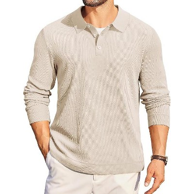 COOFANDY Mens Quarter Zip Polo Sweater Long Sleeve Knit Polo Shirts Casual Lightweight Dress Pullover BEIGE M