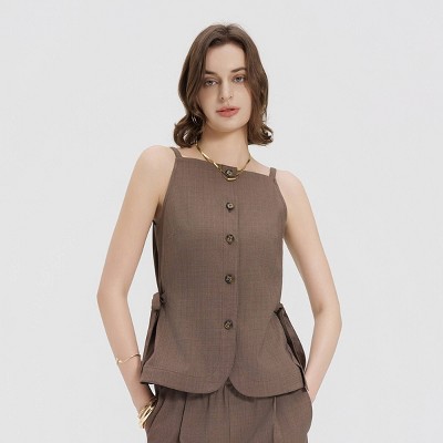 INSPIRE CHIC Women's Notched Lapel Sleeveless Button Down V Neck Casual Work Suit Vests