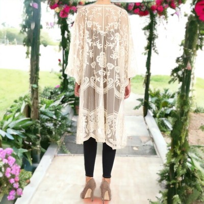 Anna-Kaci Women's Embroidered Floral Butterfly Crochet Drop Shoulder Cardigan