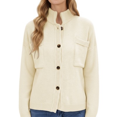 Anna-Kaci Women's Button Front Long Sleeve Knit Fashion Cardigan with Stand Collar and Front Pocket