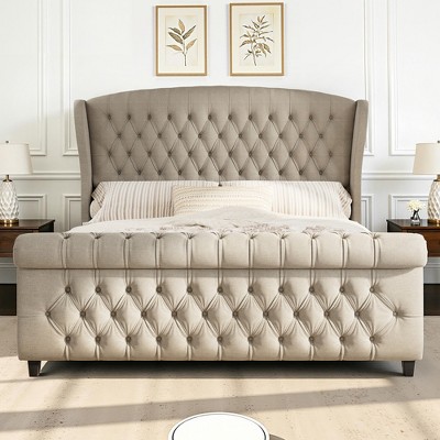 - linen upholstered bed