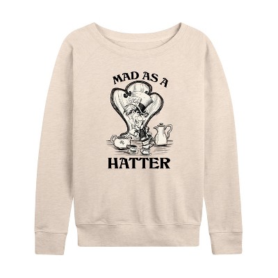 Women's - Alice In Wonderland - Lightweight French Terry Wide Neck Long Sleeve Graphic Shirt