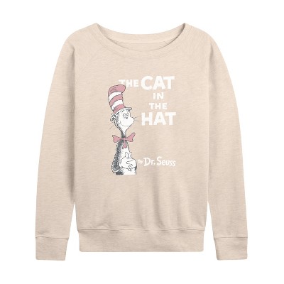 Women's - The Cat in the Hat - Cover Tonal Lightweight French Terry Wide Neck Long Sleeve Graphic Shirt