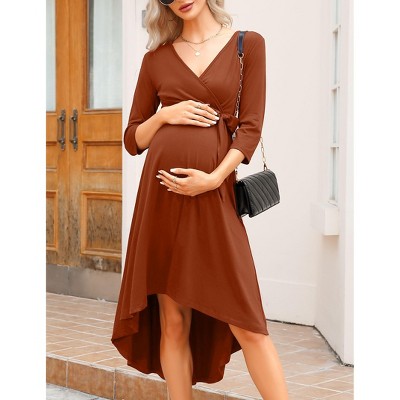 Maternity Velvet Dress V Neck Long Sleeve High Waisted Midi Dress Baby Shower Photoshoot