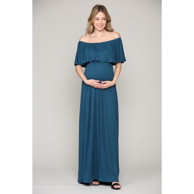 Maternity Off Shoulder Split A Line Dress Casual Maxi Dress