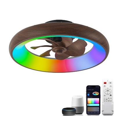 20" Caged Ceiling Fan With Light, Low Profile Ceiling Fan With Remote Control and 4x E26 Bulb