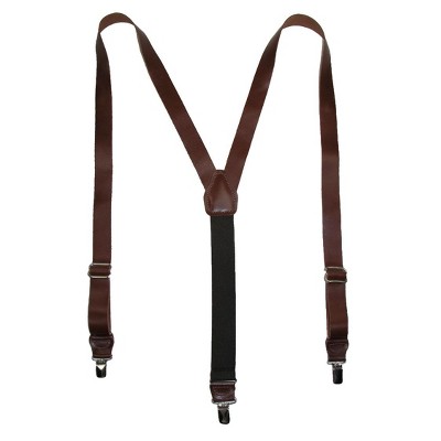 CTM Men's Smooth Coated Leather Suspenders with Metal Swivel Hook Ends