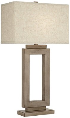 360 Lighting Rustic Farmhouse Table Lamp 30" Tall Sand Metal Open Window Oatmeal Fabric Rectangular Shade for Bedroom Living Room Bedside House Home