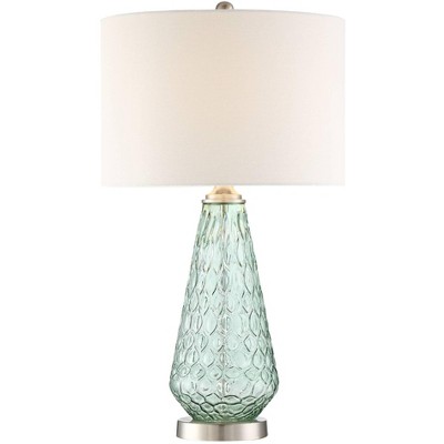 360 Lighting Julia Modern Coastal Table Lamp 26 1/2" High Sea Foam Green Glass with Table Top Dimmer Off White Drum Shade for Bedroom Living Room Home
