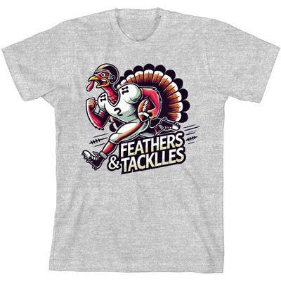 Thanksgiving Feathers & Tackles Turkey Football Player Adult Crew Neck Short Sleeve Tee
