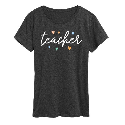 Women's - Instant Message - Teacher With Hearts Short Sleeve Graphic T-Shirt
