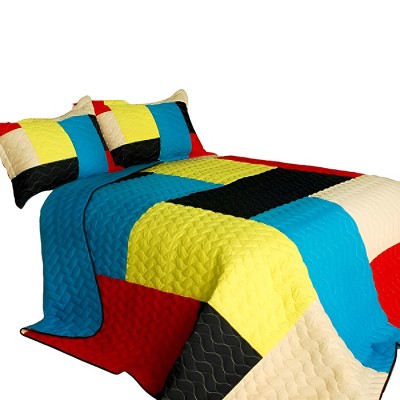 Slickblue Full/Queen Cotton 3PC Quilt Set — Vermicelli Quilted Printed Bedding, Machine Washable