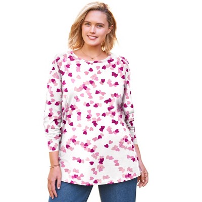 Woman Within Perfect Printed Long-Sleeve Crewneck Tee