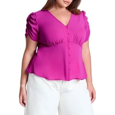 Woman Within Short-Sleeve V-Neck Shirred Tee