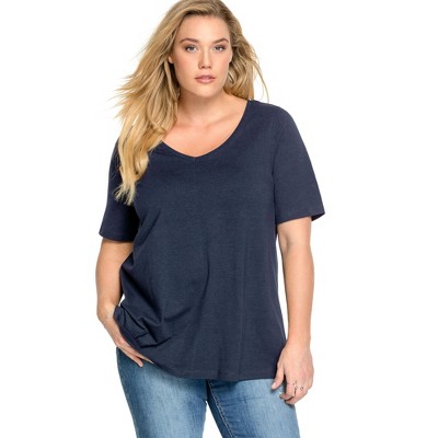 ellos Stretch Knit V-Neck Short Sleeve Tunic