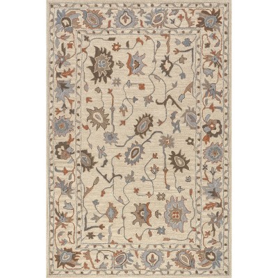- Distressed geometric pattern in earthy tones creates a chic and contemporary look