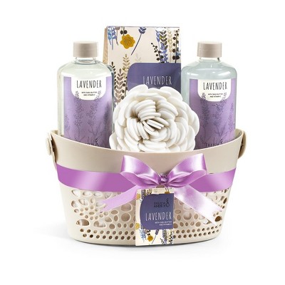 - Includes: Body Wash, Bubble Bath, Body Lotion
