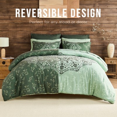 9 Pcs BIAB Botanical Print Comforter Set, Premium Touch Boho Style Bed in a Bag Durable Bed Set for Year-Round Use
