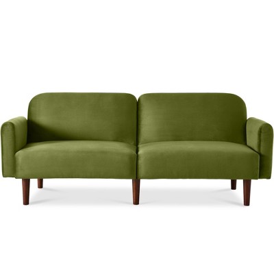 - CONVERTIBLE FUNCTIONALITY: Easily transitions from a plush futon, couch, or sofa to a convenient bed in seconds with removable armrests and an adjustable backrest