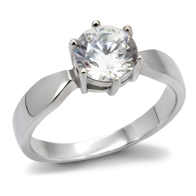 Slickblue Stainless Steel Ring, Clear CZ Solitaire, Polished Finish, Engagement Style for Women, Size 5-10