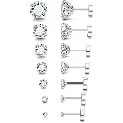 SmallRig 20G Hypoallergenic Flat Back Earrings - Surgical Steel 14K Gold/Silver CZ & Birthstone Studs