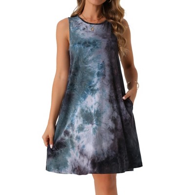 INSPIRE CHIC Women's Tie Dye Tank Beach Casual Sleeveless Loose T-shirt Sundress with Pockets