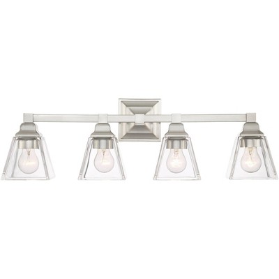 Regency Hill Mencino Modern Wall Light Satin Nickel Hardwire 28" 4-Light Fixture Clear Glass Shade for Bedroom Bathroom Vanity Living Room Hallway