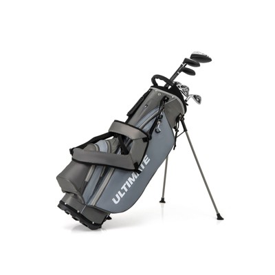 Gymax Men's Left-Handed Complete Golf Set w/ 460CC #1 Driver #3 Fairway Wood #4 Hybrid Irons Putter & Stand Bag Black/Blue/Gray