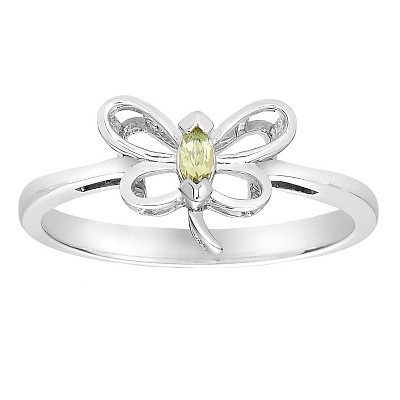 Sterling Silver White Gold Plated with Peridot Tourmaline Gemstone Butterfly Ring for Kids/Teens