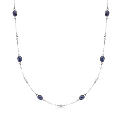 Ross-Simons 7.20 ct. t.w. Sapphire and .25 ct. t.w. Diamond Station Necklace in Sterling Silver