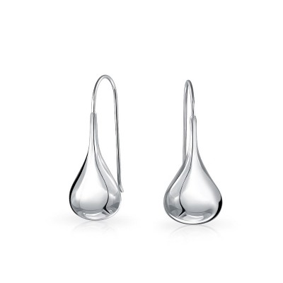 Bling Jewelry Simple Plain Puffed Teardrop Pear Shaped Rain Drop Earrings Fishhook Threader Polish Sterling Silver 1.2 Inch