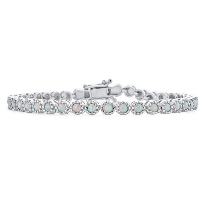 Bella Silver Sterling Silver, Bezel-Set Rectangle Bracelet - Multi-Color - Multi - 6+1 Inch