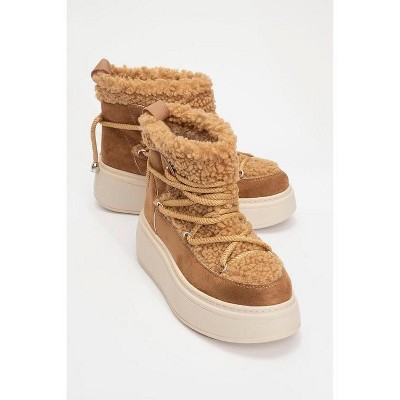 Dila Cognac Brown Fur-Lined Winter Boot (Women) | Prologue Shoes