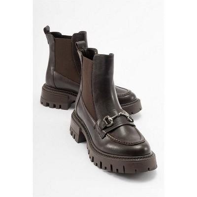 Martos - Brown Stretch Front-Zip Ankle Boot (Women) | Prologue Shoes