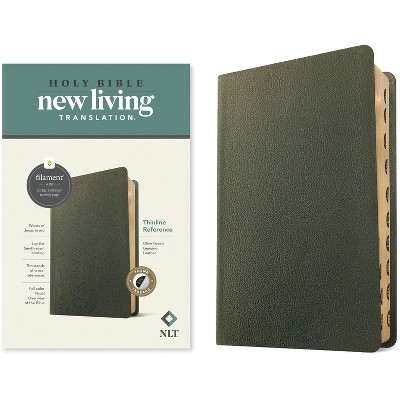 NLT Thinline Reference Bible, Filament Enabled (Genuine Leather, Olive Green, Indexed, Red Letter) - by New Living Translation (Leather Bound)