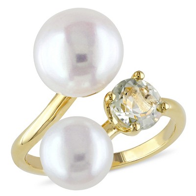 EVERLY JEWELRY | Yellow Plated Sterling Silver 4/5 CT TGW Green Quartz - And White Freshwater Cultured Pearl Fashion Ring