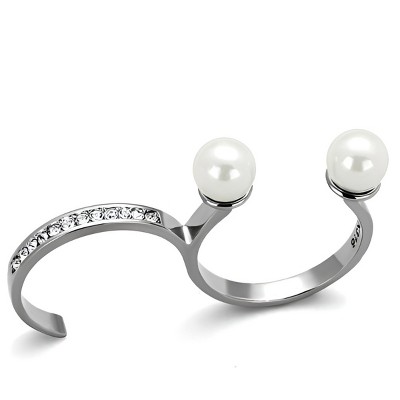 Slickblue Synthetic Pearl Ring, White Stone, Stainless Steel Jewelry, Classic Women's Style, Light Black, Sizes 5-10