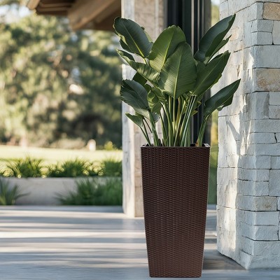 Wooakway 30"H Self Watering Planter with Water Level Indicator Indoor Outdoor Breathable Weatherproof Planter Pots for Garden Black/White/Brown