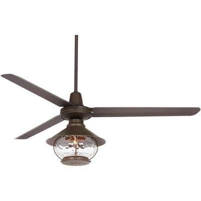 60" Casa Vieja Oak Creek Tropical Indoor Outdoor Ceiling Fan with LED Light Oil Rubbed Bronze Walnut Frosted Glass Damp Rated for Patio Exterior House