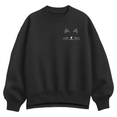 Women's - Instant Message - Cat Face Oversized Fleece Crew Sweatshirt