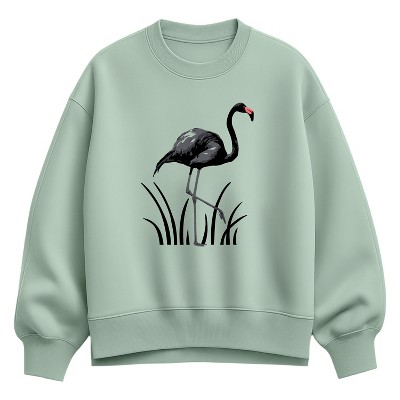 Women's - Instant Message - Black Flamingo Oversized Fleece Crew Sweatshirt