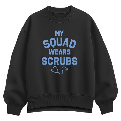 Women's Instant Message My Squad Wears Scrubs Oversized Fleece Crew Sweatshirt - Black - 2 X-Large