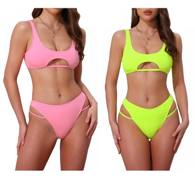 INSPIRE CHIC Women's Ribbed Scoop Neck Top Triangle Bottom Swimwear Bikini Suits 2 Sets