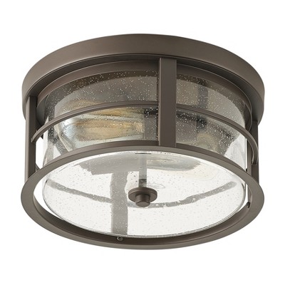 VAXCEL Northlake 2-Light 13 in. Wide Matte Black Transitional Dome Flush Mount Lighting Fixture, Clear Water Glass Shade