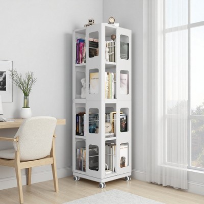 6-Tier Rotating Bookshelf with Wheels & Drawer