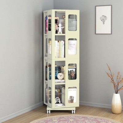 4-Tier Rotating Solid Wood Bookshelf with Wheels