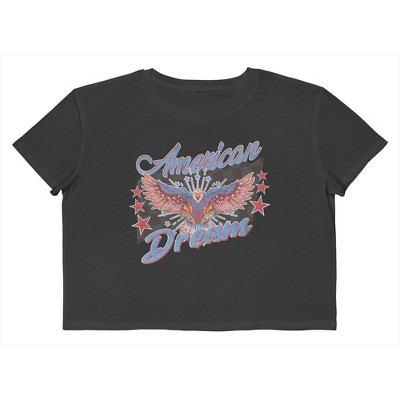 Social Collective Women's American Dream Americana 4Th Of July Short Sleeve Graphic Cotton Cropped Loose T-shirt - Caviar XXL