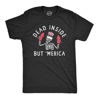 Mens Dead Inside But America T Shirt Funny Depressed Fourth Of July Party Tee for Guys - Crazy Dog Men's T Shirt For Fourth Of July