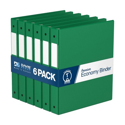 Davis Group 6pk 1" Premium Economy Round Ring Binders Green: Hard Cover, 200 Sheet Capacity, 2 Pockets, Polypropylene