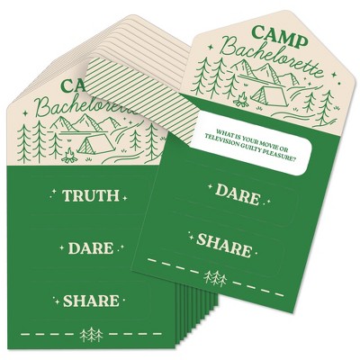 Big Dot of Happiness Camp Bachelorette Truth, Dare, or Share Pull Tabs Game, Cabin Glamping Bachelorette Party Game Pickle Cards - Set of 12